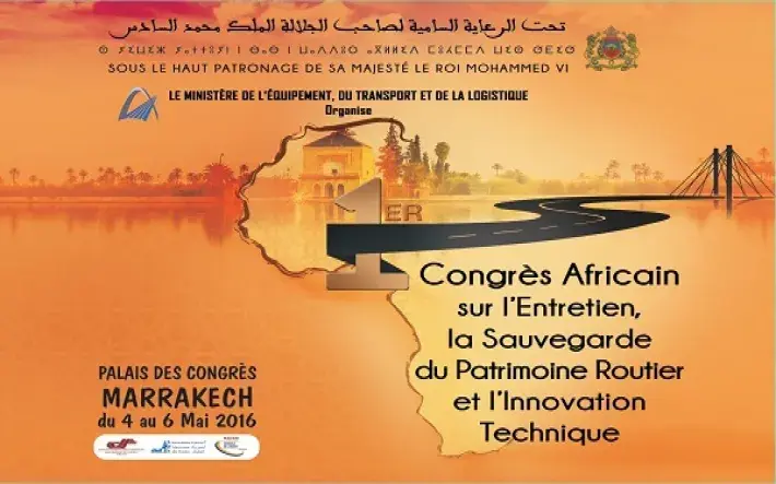 Sous le Haut-Patronage de Sa Majesté le Roi Mohammed VI, que Dieu Le glorifie, le Ministère de l’Equipement, du Transport et de la Logistique, en partenariat avec l’Association Marocaine Permanente des Congrès de la Route (AMPCR) et l’Association Mondiale de la Route (AIPCR), organisent le 1er Congrès Africain sur l’Entretien, la Sauvegarde du Patrimoine Routier et l’Innovation Technique, du 4 au 6 mai 2016 au Palais des congrès à Marrakech.