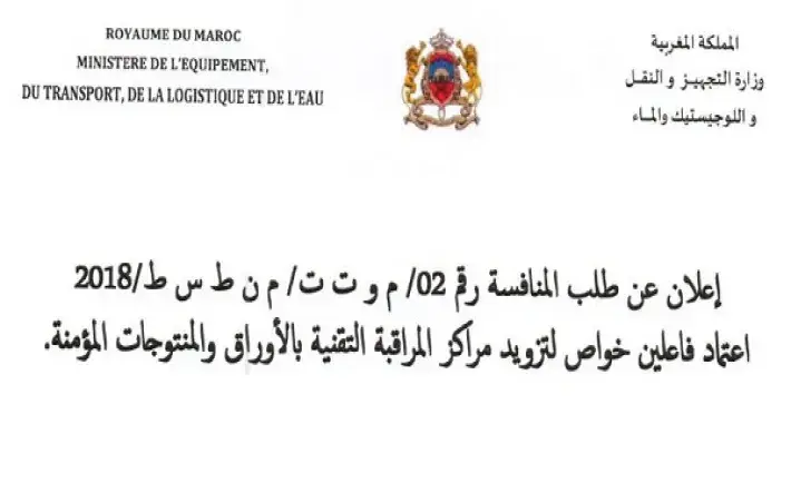 Appel a la concurrence N°2 /CNEH/DTRSR/2018 relatif du papier sécurisé utilisé par les centre de contrôle technique.