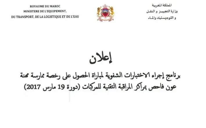 Avis sur le programme de l'épreuve orale de l'examen d'agents visiteurs (Session du 19 Mars 2017)