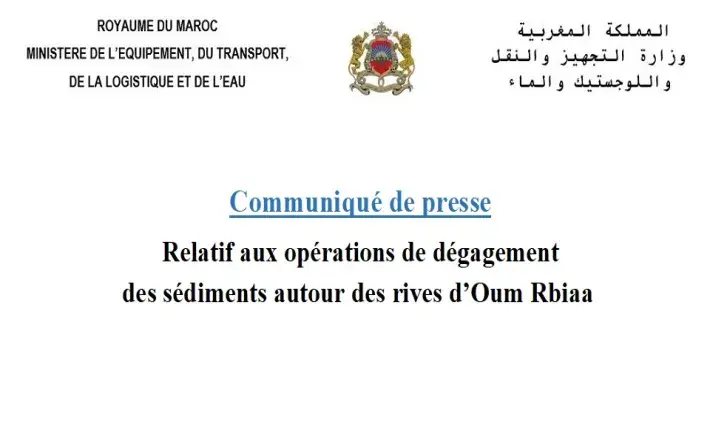 Communiqué de presse relatif aux opérations de dégagement des sédiments autour des rives d’Oum Rbiaa