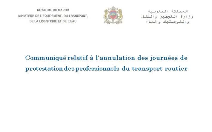 Communiqué relatif à l’annulation des journées de protestation des professionnels du transport routier
