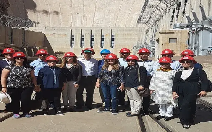 Monsieur le Ministre et la délégation l’accompagnant, ont effectué, le jeudi 27 juin 2019, une visite de travail au barrage Hoover, situé près de la ville de Las Vegas, et constituant l'un des plus grands barrages du monde avec une capacité de stockage de 35 milliards de mètres cubes, présentant environ dix fois l'équivalent du barrage Al Wahda du Royaume. La construction de cet ouvrage hydraulique remonte aux années 30 du siècle dernier. Après une présentation détaillée par le Directeur Général de cet important ouvrage hydraulique, la délégation a ensuite visité les différentes installations du barrage. Le débat a porté particulièrement sur la gestion de la retenue d'eau dudit barrage, qui a enregistré une diminution notable au cours des dernières années, ainsi que ses répercussions sur les allocations d’eau des Etats bénéficiant du transfert à partir dudit barrage et la relation de cette situation avec le changement climatique.