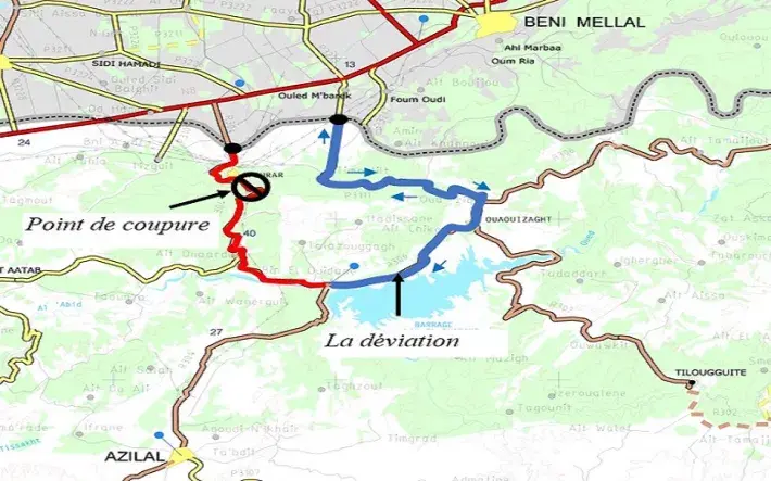 Le Ministère de l’Equipement, du Transport, de la Logistique et de l’Eau annonce que la circulation sera coupée pendant 05 jours, du Lundi 03 Mai 2021 à 10h00 au Vendredi 07 Mai 2021, sur le tronçon routier reliant Bin El Ouidane à Afourer de la route nationale n° 25 (Ex route régionale n° 304) au niveau des localités d’Ait Ouaerda et Ighir N’Ait Guirt. Et ce, pour permettre la réalisation des travaux de terrassement dans le cadre des travaux d’élargissement et de renforcement dudit tronçon.