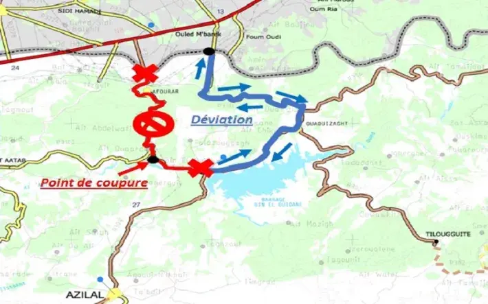 Le Ministère de l’Equipement, du Transport, de la Logistique et de l’Eau annonce que la circulation sera coupée sur la route nationale n° 25 section reliant Bin El Ouidane à Afourer dans la Province d’Azilal (Ex RR304, du PK95+800 au PK125+000), de la période allant du mardi 20 Avril 2021 à 10h00 au dimanche 25 Avril 2021, pour travaux de terrassement de la section située au niveau de la localité d’Ait Ouaerda entre les PK 102+500 et PK102+800.