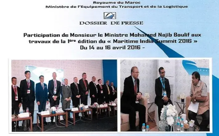 Publication d'un dossier de presse concernant la participation de M. le ministre Mohamed Najib Boulif à la 1ère édition du "Maritime India Summit 2016" du 14 au 16 avril 2016