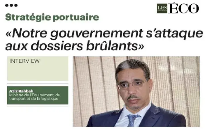 Monsieur Aziz Rabbah, Ministre de l'Equipement, du Transport et de la Logistique, a accordé un entretien au journal quotidien "Les Inspirations Eco" qui a été publié dans son numéro 1623 en date du 20 mai 2016 sous le titre "Stratégie portuaire : Notre gouvernement s'attaque aux dossiers brûlants".