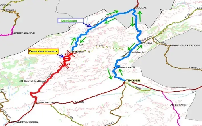 La déviation de la circulation vers Tinghir est possible par les itinéraires suivants :