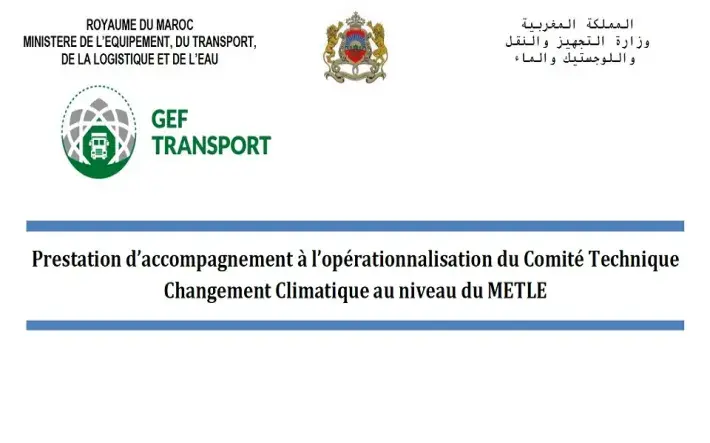 Le projet GEF- Transport lance une consultation visant l’accompagnement à l’opérationnalisation du « Comité Technique Changement Climatique (CTCC) au niveau du Ministère de l’Equipement, du Transport, de la Logistique et de l’Eau (METLE) ».