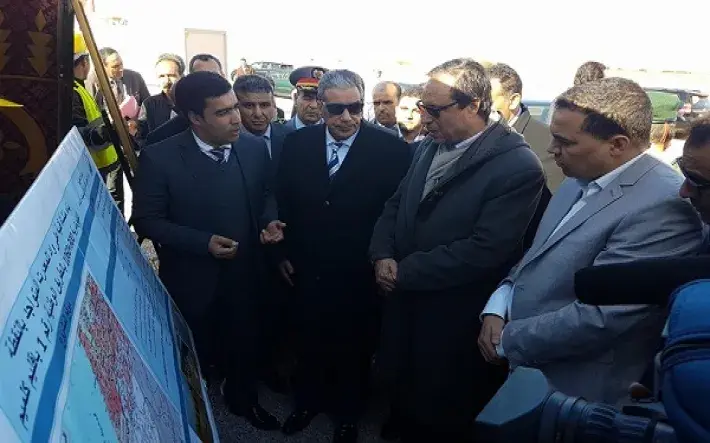 Par la suite, Monsieur Amara accompagné de Monsieur le Wali de la Région ont visité le chantier d’élargissement et de renforcement de la Route Régionale N°102 reliant Bouizakarne à Timoulay sur 13 km. Les travaux de ce projet, qui s’inscrit dans le cadre du Programme de Réduction des Disparités Territoriales et Sociales (PRDTS) avec un coût de 16.3 MDHS, s’étalent sur 12 mois et visent à optimiser la mobilité de la population de la région et à réduire les disparités spatiales.