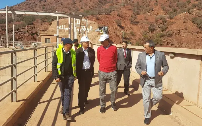 En outre, M. Amara a effectué une visite pour s’enquérir de l’état du barrage « Dkhila » situé près de la ville d'Oulad Teima, et qui a été construit au niveau d’Oued Issen et a été mis en exploitation en 1986. Ce barrage, malgré sa retenue limitée, joue un rôle important dans la régulation de l'eau du barrage " Abdelmoumen " dédiée à l'eau potable et l'irrigation. Après avoir visité les différents équipements de ce barrage, en s’informant sur les mesures bathymétriques qui dévoilent le niveau de la boue au niveau du barrage, Monsieur le Ministre a donné ses instructions aux services du Ministère et l’Agence du Bassin Hydraulique pour identifier en urgence, une solution efficace à cette problématique vu l’importance de ce barrage.