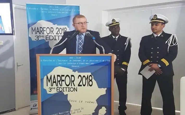 Monsieur Mohamed Najib BOULIF, Secrétaire d’Etat auprès du Ministre de l’Equipement, du Transport, de la Logistique et de l’Eau, Chargé du Transport, a présidé mercredi 21 mars 2018, la cérémonie d’ouverture de la 3ème édition du Forum Entreprises « MARFOR 2018 », organisée par l’Institut Supérieur d’Etudes Maritimes (ISEM) sous l’égide du Ministère de l’Equipement, du Transport, de la Logistique et de l’Eau, les 21, 22 mars 2018, sous le thème « Le Transport Maritime au cœur de la coopération Sud-Sud ».