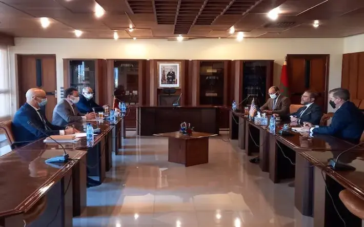 Dans le cadre des relations solides entre le Royaume du Maroc et les Etats Unis d’Amérique (USA), Monsieur Mohammed ABDELJALIL, Ministre du Transport et de la logistique, a tenu une réunion de travail, le jeudi 10 février 2022 au siège du Ministère, avec Monsieur David GREENE, Chargé d’Affaires de l’Ambassade des Etats-Unis d’Amérique à Rabat, qui était accompagné d’une délégation représentant le service économique auprès de l’Ambassade. A cette occasion, le Ministre a souligné l’excellence des relations de coopération entre le Maroc et les USA, et a exprimé l’ambition de développer davantage ses relations, notamment dans les secteurs du transport et de la logistique. Il a également présenté au responsable américain les domaines de compétences du département ainsi que les axes de leur développement. De son côté, M. GREENE a loué la dynamique du développement du Maroc durant les 10 dernières années et a exprimé la volonté de son pays de saisir les opportunités de coopération avec le Royaume dans les domaines du transport et de la logistique. Le responsable américain a notamment évoqué l’intérêt des Etats-Unis pour le financement de projets de transport durable et pour l’accompagnement du Ministère dans le renforcement de ses compétences. Au terme de cette rencontre, les deux parties ont réitéré leur volonté d’œuvrer au renforcement des liens de coopération entre les deux pays.