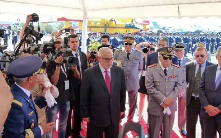 Marrakech,27/04/2016 (MAP), La 5ème édition du Salon international de l'Aéronautique et du spatial, "Marrakech Air Show 2016", s'est ouverte, mercredi, à la Base Ecoles des Forces Royales Air (FRA) de la cité ocre, en présence du chef du gouvernement, Abdelilah Benkirane et du général de corps d'armée, inspecteur général des Forces Armées Royales (FAR) et Commandant la Zone Sud, Bouchaib Arroub.