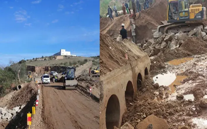Il est à noter, que lors de l’opération de la réparation provisoire des dégâts des inondations qu’a connu la région durant le mois de novembre 2016, en utilisant les moyens relevant du Ministère de l’Equipement, du Transport et de la Logistique, avec la participation de l’autorité locale et des intervenants locaux, et dans l’attente d’une solution définitive, il a été procédé à la mise en place de la chaussée susmentionnée avec des canaux d’une capacité (9Ø800). En outre, durant l’été 2016, la couche de surface a été améliorée avec la technique d’enrobé coulé à froid.
