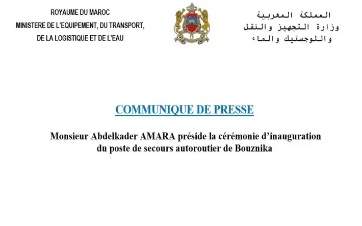 Dans le cadre du partenariat stratégique entre la Direction Générale de la Protection Civile (DGPC) et la Société Nationale des Autoroutes du Maroc (ADM), Monsieur Abdelkader AMARA, Ministre de l’Equipement, du Transport, de la Logistique et de l’Eau, a présidé, le mardi 23 février 2021, la cérémonie d’inauguration du poste de secours autoroutier de Bouznika, en présence de Monsieur le Général de Division, Directeur Général de la Protection Civile, de Monsieur le Directeur Général de ADM ainsi que des responsables du Ministère.