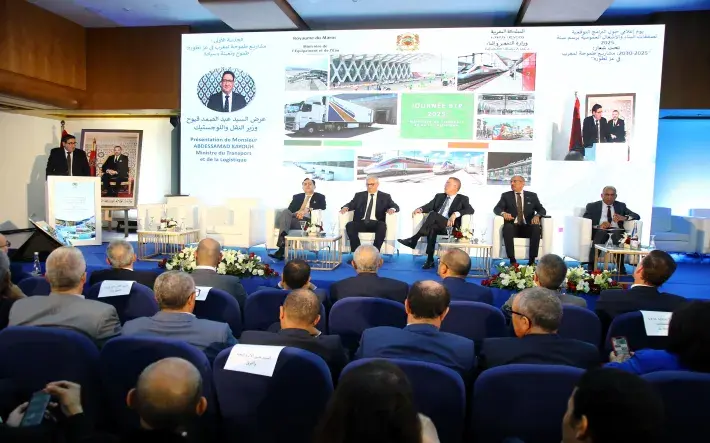 Lors de l'ouverture de cette journée, M. KAYOUH, Ministre du Transport et de la Logistique, a affirmé dans son allocution, que l’engagement du Royaume, sous la conduite éclairée de Sa Majesté le Roi Mohammed VI, que Dieu L’assiste, s’inscrit dans une dynamique de transformation structurelle et profonde de l’économie nationale, axée sur l’investissement productif, la réduction des disparités territoriales en matière d’infrastructures de base, ainsi qu’une intégration accrue dans les chaînes d’approvisionnement mondiales.