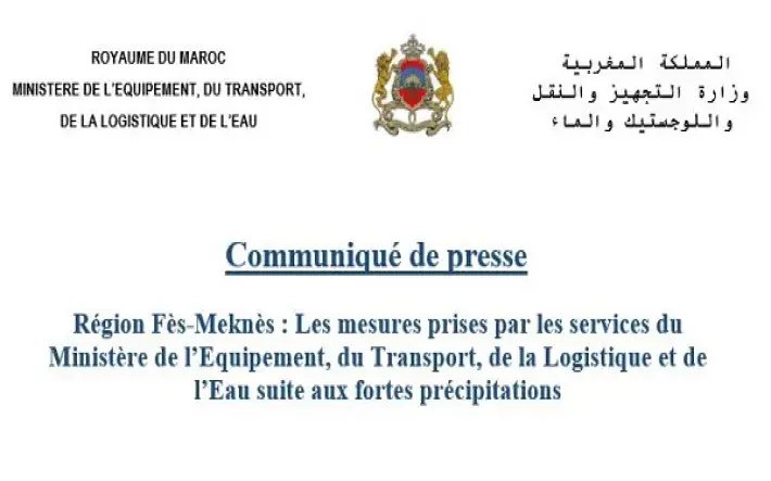 Les Provinces de la Région de Fès-Meknès ont connu dernièrement d’importantes précipitations avec de fortes rafales de vent qui ont causées des perturbations de la circulation au niveau de certaines sections de routes, dues aux crues de certains Oueds et le glissement de terrains dans certaines zones.