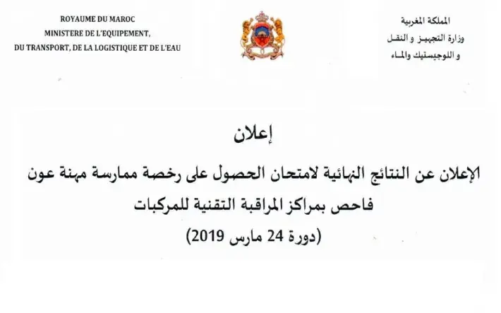 Publication des résultats définitifs de l'examen d'obtention de l'autorisation d'agent visiteur session du 24 Mars 2019