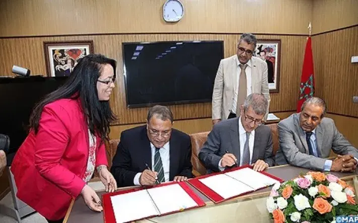 Rabat/23 novembre 2015/Monsieur Mohamed Rabie Lekhlie, Directeur Général de l’Office National des Chemins de Fer et Monsieur Mohamed Zouhair El Aoufir, Directeur Général de l’Office National des Aéroports, ont signé une convention de partenariat entre les deux organismes visant à offrir des privilèges au niveau des services et des produits ferroviaires en faveur des clients de l’Office National des Aéroports.