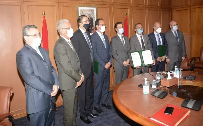 Dans le cadre de la mise en œuvre du programme d’action de l'Agence Nationale de la Sécurité Routière (NARSA) au titre de l'année 2021, notamment l'axe relatif à l'amélioration de la qualité des services de proximité rendus aux usagers au niveau des 76 centres immatriculateurs, M. Mohamed BENCHAABOUN, Ministre de l'Économie, des Finances et de la Réforme de l’Administration, et M. Abdelkader AMARA, Ministre de l'Équipement, du Transport, de la Logistique et de l'Eau, ont présidé, le mardi 1er juin 2021 à Rabat, la cérémonie de signature d'une convention de partenariat et de coopération entre la NARSA et Al Barid Bank & Barid Cash.