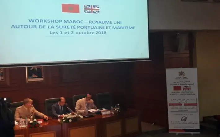 Ce workshop, présidé par Monsieur Andrew Clarke, représentant du Département du Transport du Royaume Uni, et M. Lahcen Ait Brahim, Directeur des Ports et du Domaine Public Maritime, constitue un espace d’échange autour de l’expérience anglaise et marocaine en matière de mise en place d’une stratégie de sûreté maritime en vue d’améliorer le niveau de la prise en charge des obligations internationales en matière de sûreté portuaire et maritime.